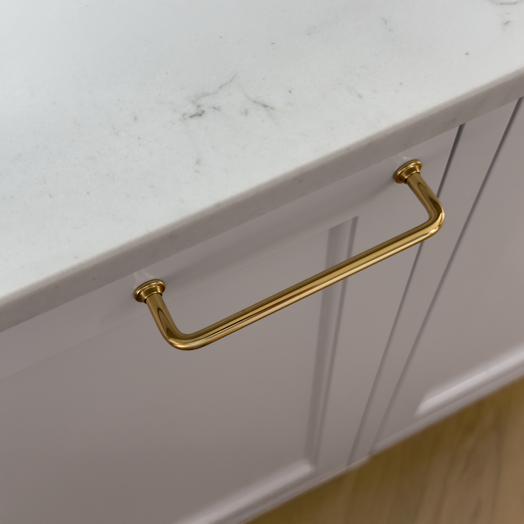 Dieser elegante Frederiksberg-Griff aus massivem, poliertem und lackiertem Messing passt gut zu den meisten Küchen, Bädern oder Möbeln. Bei Copenhagen Home Design bieten wir diesen klassischen Küchengriff mit gestufter Fußplatte in vielen Farben und Größen an, so dass Sie Ihrer Küche oder Ihren Möbeln problemlos einen exklusiven Designausdruck verleihen können. Dieser Griff ähnelt dem beliebten Griff 1353, wobei wir uns entschieden haben, den Frederiksberg-Griff aus massivem Messing in allen Farben zu fertigen, um die beste Qualität auf dem Markt zu garantieren.