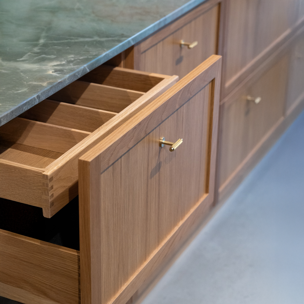 Chr. Jørgensen har designet og udviklet greb og beslag siden 1923. Dette greb er tegnet og designet af Christian Dan Jørgensen.