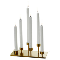 Lysestagen er af metal med en finish i messing.