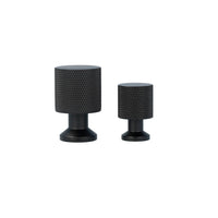 Dieser Möbelknopf aus schwarzem Messing mit Diamantschliff kann sowohl als Knauf als auch als Haken verwendet werden. Die diamantgeschliffene Oberfläche verleiht dem Knopf einen rohen und leicht industriellen Look, der Ihrer Einrichtung den letzten Schliff geben kann.