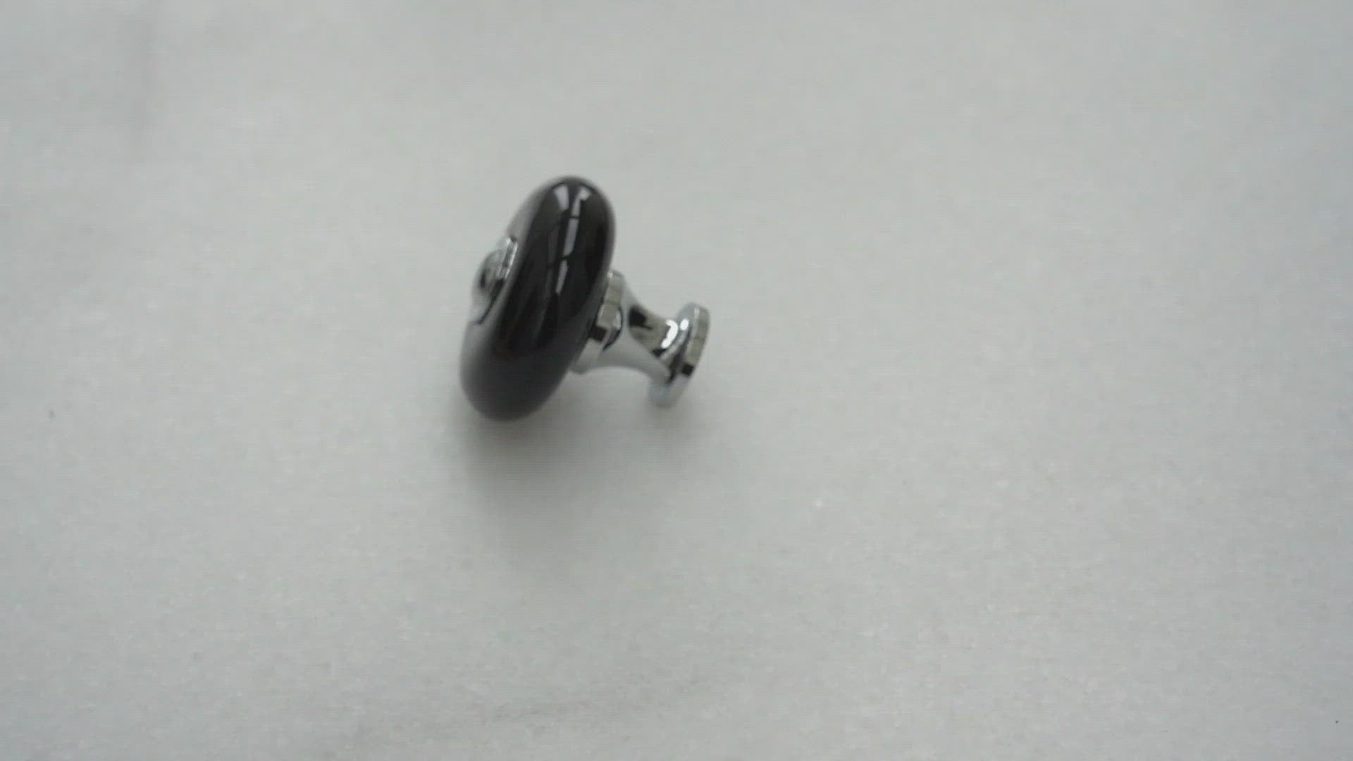 Knoppen er fremstillet i sort porcelæn med en fod i massiv messing. Den sorte Porcelæn og overfladen i forkromet messing er nem at vedligeholde.