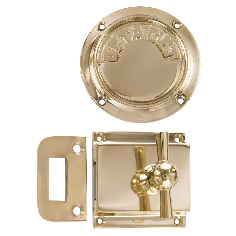Toiletlås DSB m/markering til udadgående døre, poleret blank messing uden lak • KYNER & Co