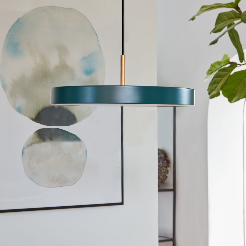 Asteria pendlen fra danske UMAGE forener enkelthed, teknologi og godt håndværk i et tidløst design. Det slanke, specialdesignede LED-panel giver lampen et minimalistisk udtryk, der aldrig går af mode. Panelet kan dæmpes med en ekstern lysdæmper, og diffuseren sikrer en blød og behagelig belysning i rummet. Pendlen fås i to størrelser og hele 11 farver. Den elegante top kan desuden nemt udskiftes til enten messing, stål eller sort på få minutter, hvilket giver dig et fleksibelt design, der kan tilpasses din personlige stil.