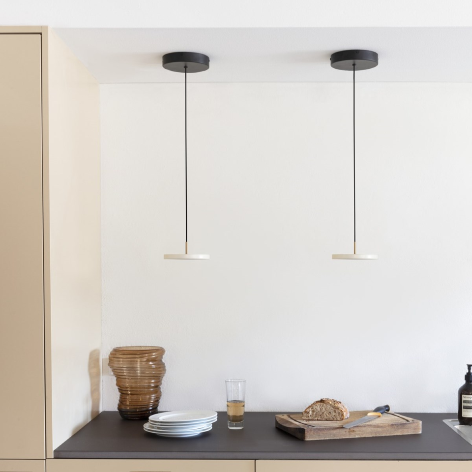 Asteria pendlen fra danske UMAGE forener enkelthed, teknologi og godt håndværk i et tidløst design. Det slanke, specialdesignede LED-panel giver lampen et minimalistisk udtryk, der aldrig går af mode. Panelet kan dæmpes med en ekstern lysdæmper, og diffuseren sikrer en blød og behagelig belysning i rummet. Pendlen fås i to størrelser og hele 11 farver. Den elegante top kan desuden nemt udskiftes til enten messing, stål eller sort på få minutter, hvilket giver dig et fleksibelt design, der kan tilpasses din personlige stil.