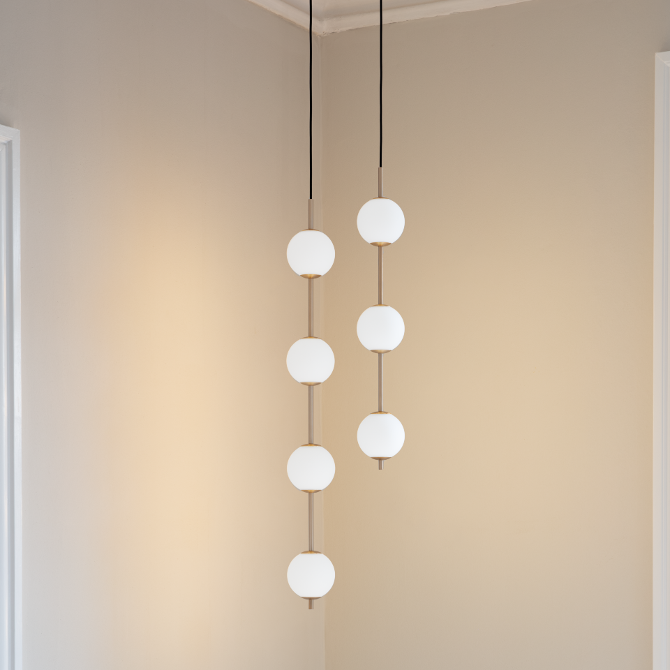 Audrey pendlerne fra UMAGE tilfører hjemmet et sofistikeret og tidløst præg. Lamperne fås med en til fire mundblæste glober og detaljer i messing eller stål, der spreder lyset blødt og skaber en behagelig atmosfære. Pendlerne kan hænges enkeltstående, i klynger eller i række og er velegnede over spisebordet, køkkenøen eller i gangen. Lyset kan justeres med en ekstern dæmper, så det passer til stemningen.