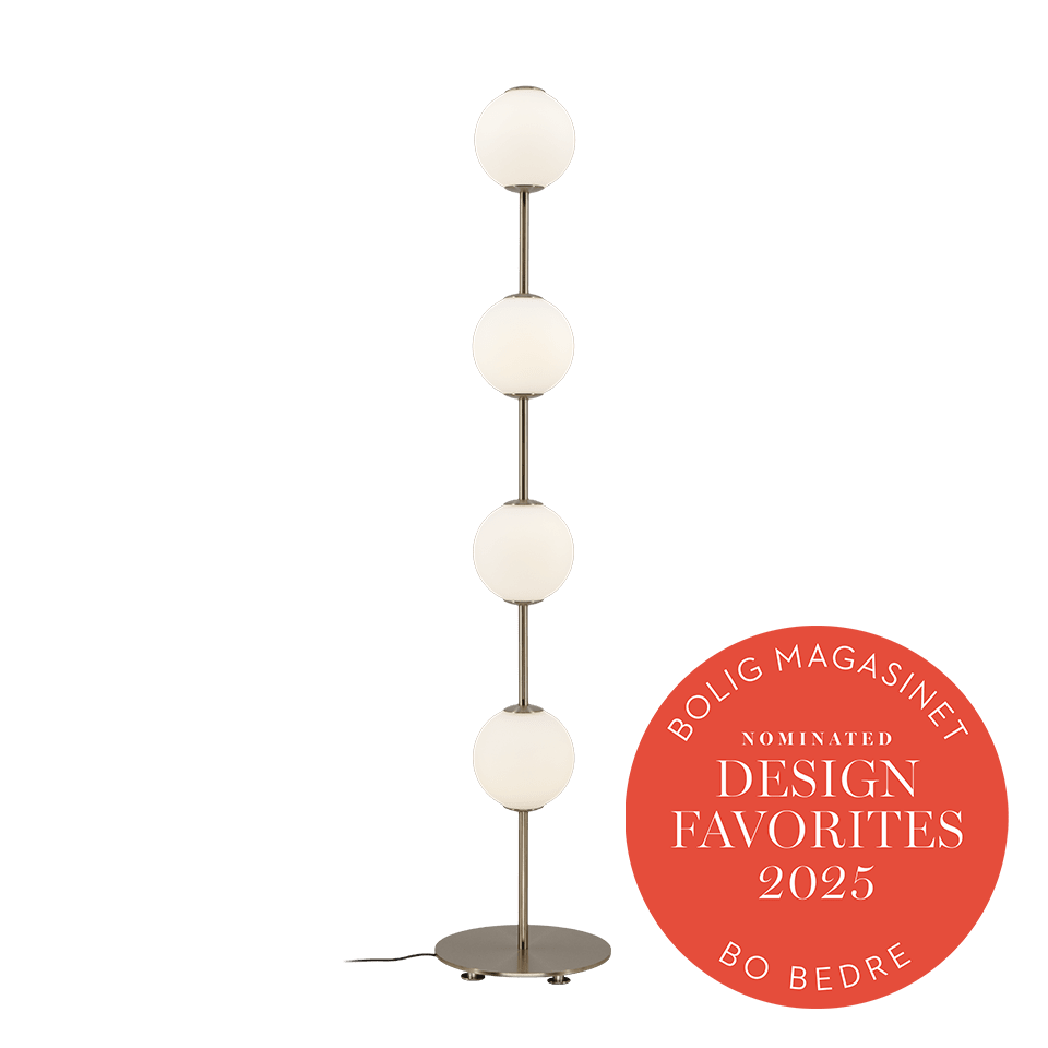 Audrey Floor fra danske UMAGE tilfører hjemmet en indbydende og tidløs elegance. Med detaljer i messing og mundblæste opalglas-glober spreder lampen lyset blødt og skaber en rolig og behagelig atmosfære.Lyset kan justeres med en diskret knap på toppen af lampen, så du nemt tilpasser stemningen. Audrey Floor oplyser rummet med et blødt skær og skaber hygge i både stue, entré og andre opholdsrum.