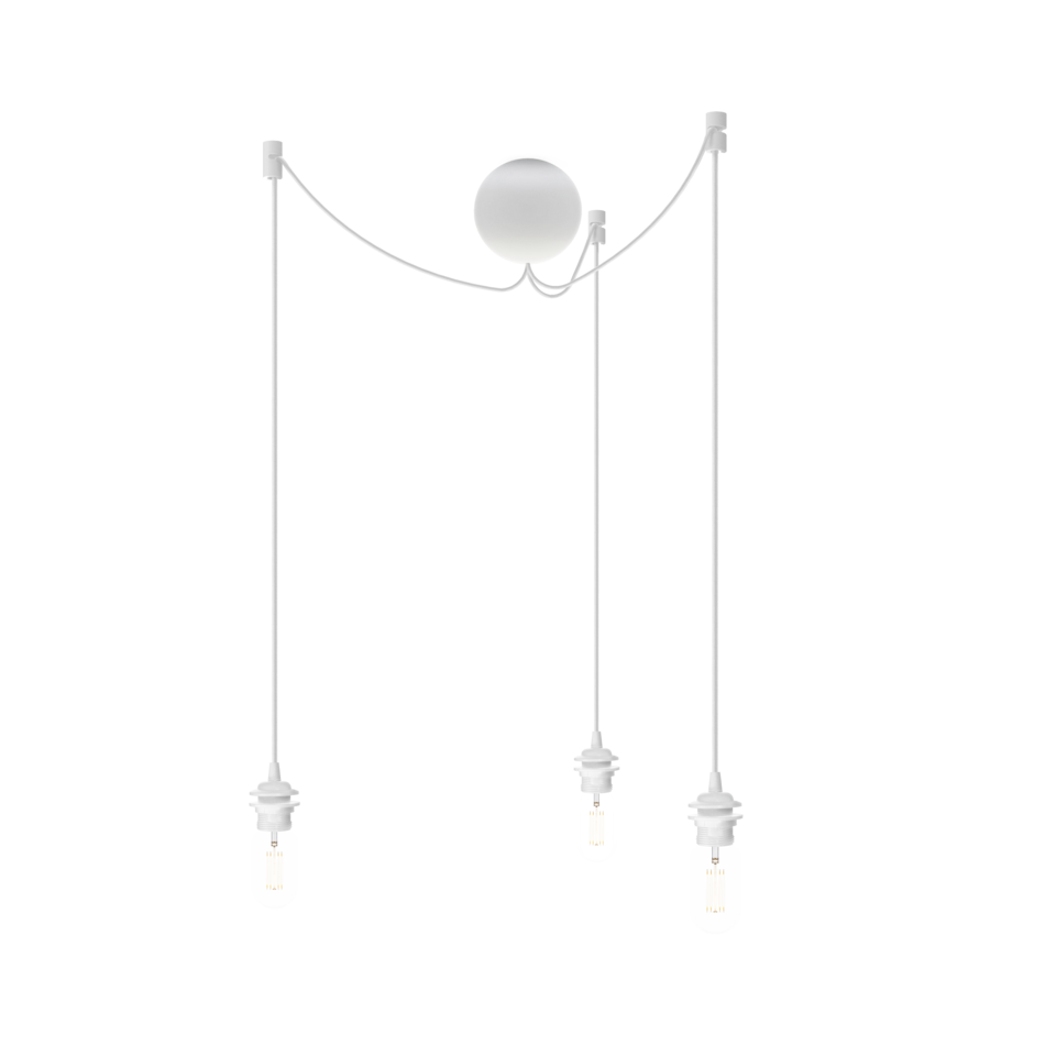 Canonball Cluster 3, baldakin med 3 x ledning og fatning E27, hvid • UMAGE