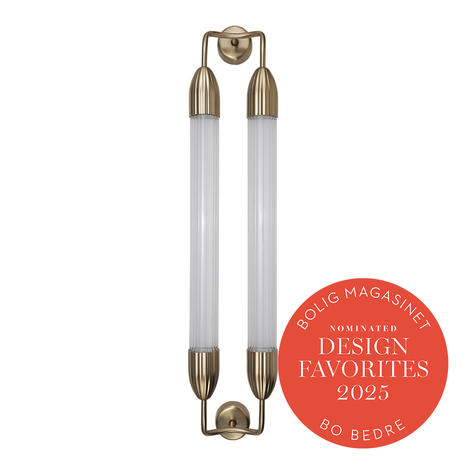 Lemon Squeeze Double væglampen vækker nostalgisk charme med sin kombination af riflede glas og skulpturelle metaldetaljer, der forener moderne æstetik med elegante referencer til fortiden. De strukturerede glasoverflader fanger lyset smukt, mens de indbyggede diffusere sikrer en blid og jævn belysning, der skaber en rolig og harmonisk atmosfære.