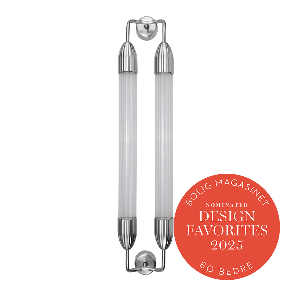 Lemon Squeeze Double væglampen vækker nostalgisk charme med sin kombination af riflede glas og skulpturelle metaldetaljer, der forener moderne æstetik med elegante referencer til fortiden. De strukturerede glasoverflader fanger lyset smukt, mens de indbyggede diffusere sikrer en blid og jævn belysning, der skaber en rolig og harmonisk atmosfære.