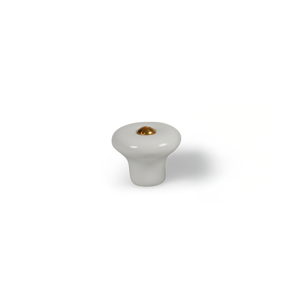 Der Knopf ist aus Porzellan mit einer weißen, pflegeleichten Oberfläche.